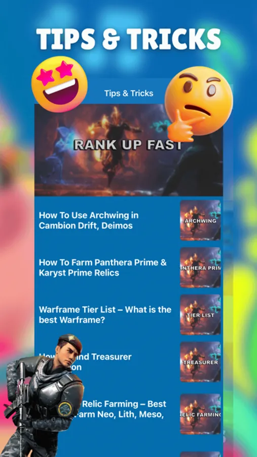 At the heart of the app is a comprehensive Warframe guide, featuring detailed information on the game's many systems, mechanics, and characters. With the Warframe tips and tricks, you'll be able to improve your gameplay, hone your skills, and climb the ranks.