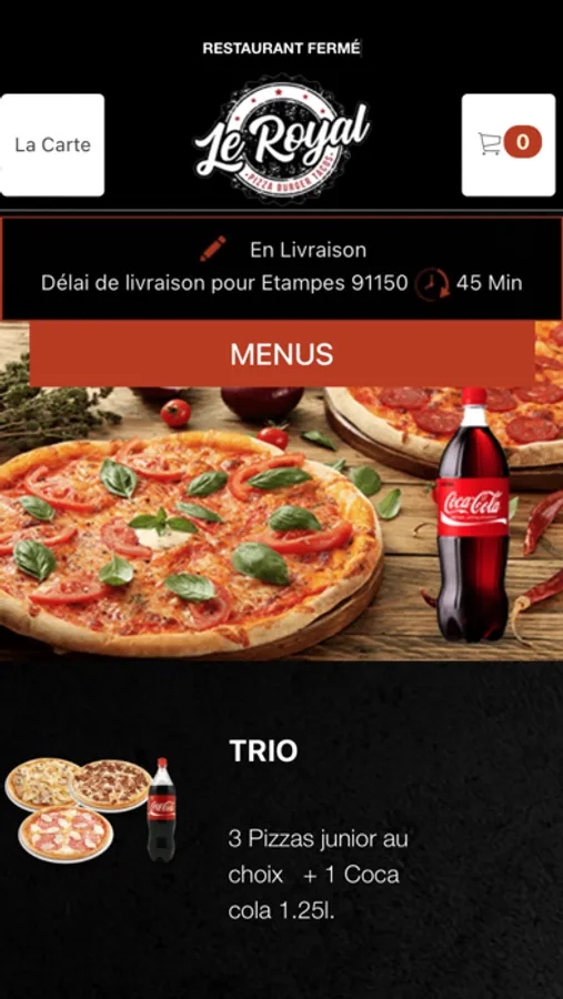 L'application Le Royal vous permet de commander en ligne ou par téléphone via votre application. Vous pouvez consulter notre carte et choisir vos produits.