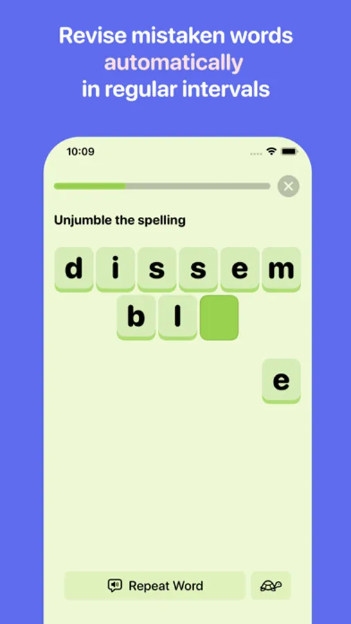 With Spelling Games, you can monitor your progress over time, providing you with a clear picture of your spelling improvements. The app offers a complete overview of the words you've mastered and the ones you're currently working on, enabling you to concentrate on areas that need more practice.