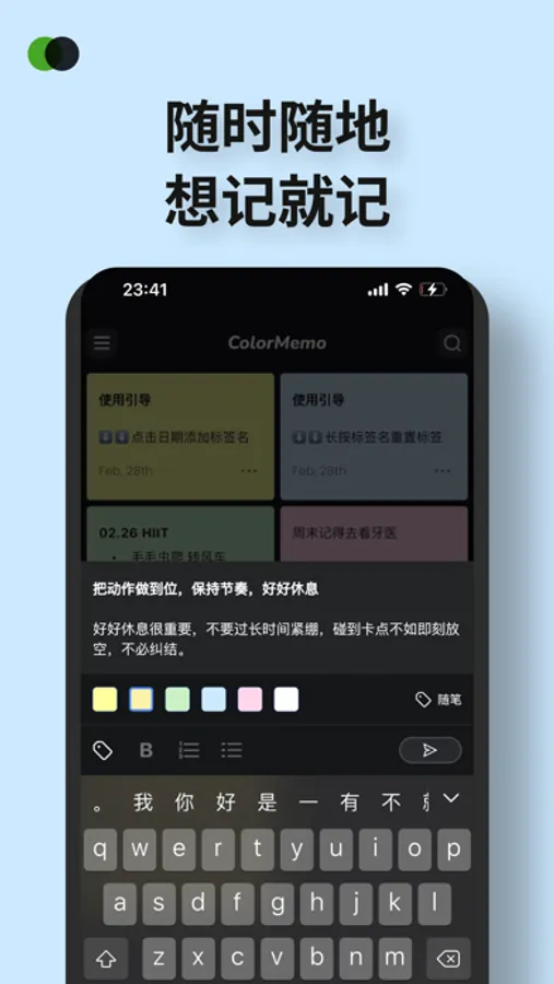 ColorMemo可以帮助你更高效地记录和管理你的灵感和想法,无论你是在日常生活中遇到的各种琐事,还是在学习和工作中需要记录的笔记和想法,ColorMemo都能满足你的需求。