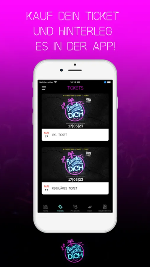 + Hinterleg dein Ticket in der Wallet und check bequem an der Abendkasse mit deinem Handy ein