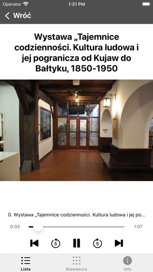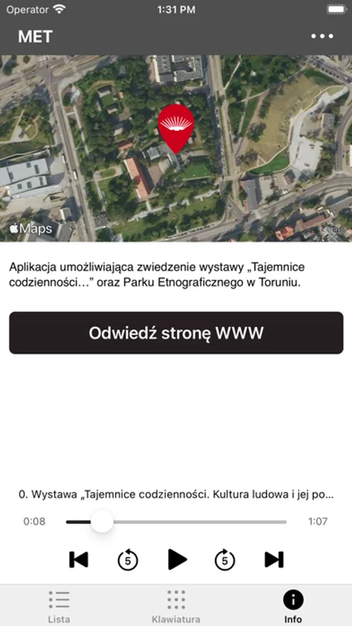Aplikacja z audioprzewodnikiem i audiodeskrypcją do wystaw stałych Muzeum Etnograficznego im. Marii Znamierowskiej-Prüfferowej w Toruniu: