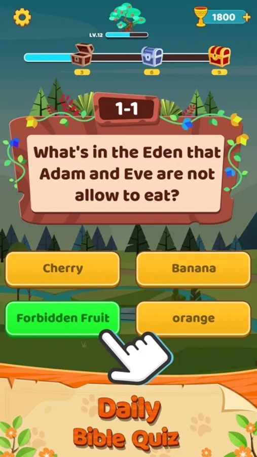 Answer Bible questions,collect forbidden fruit,finish daily challenge,enjoy a peaceful moment and listen to your heart,its our pleasure to have you in the world of Daily Bible Challenge!