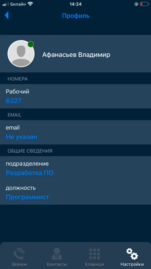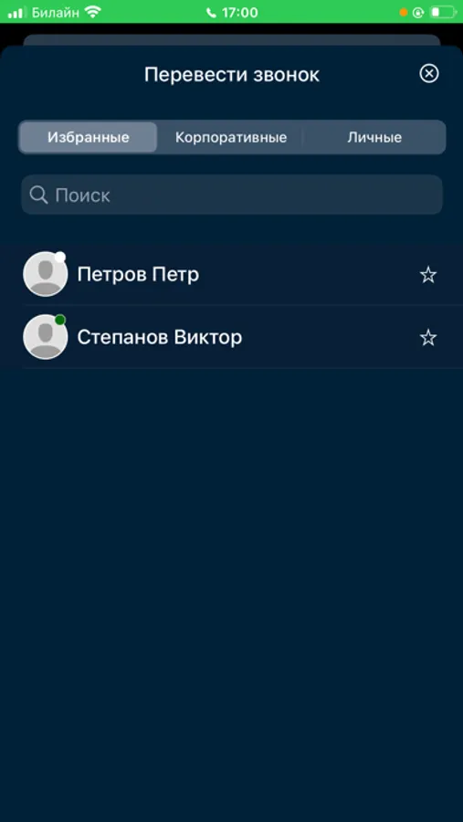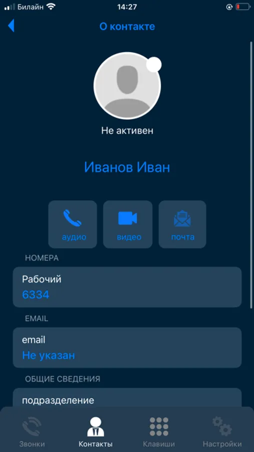• Доступ к корпоративной адресной книге и карточке контакта (ФИО, статус, фото, контактные данные и история взаимодействий)