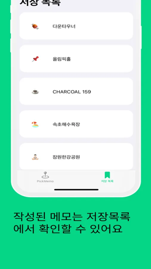 남긴 마커의 정보를 하단의 목록보기를 통해 확인할 수 있습니다.