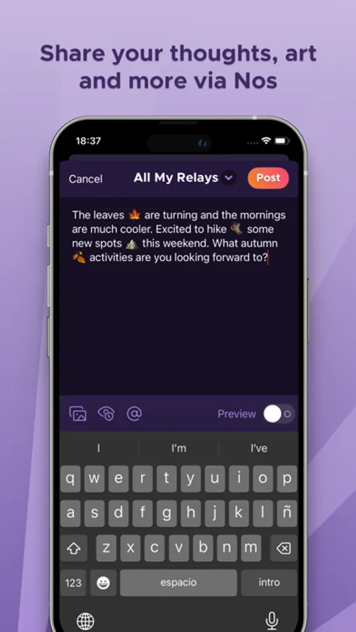 Nos is a social app designed to help you create, and discover, safe and supportive communities where you can discuss shared interests, drive social change, and make new friends. Informed by research, Nos has been developed on Nostr, a decentralized, user-led protocol, and driven by our mission to enable authentic communities built on care, connection and sustainable relationships. You own your account, your feed, and your connections, leading to more fulfilling, positive interactions online. Interact with your followers on any app on Nostr, and in the Fediverse. Download Nos today.