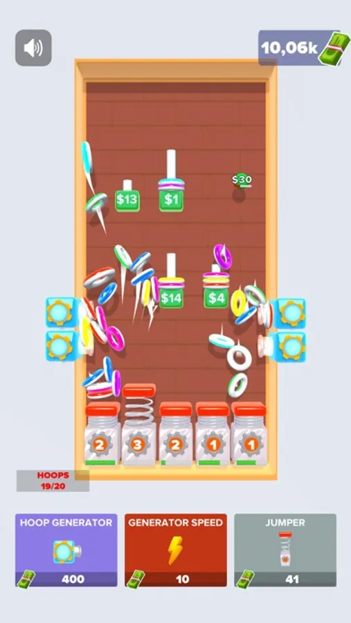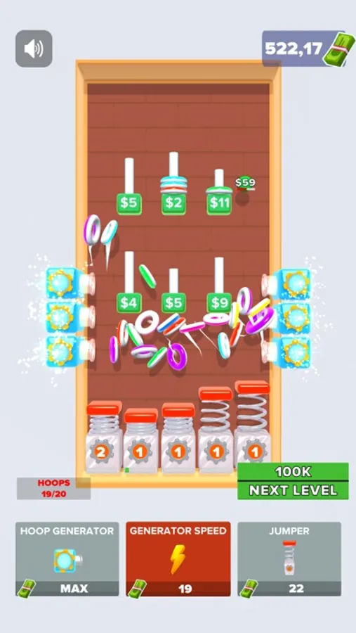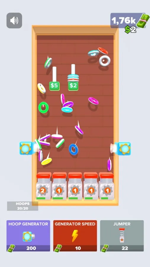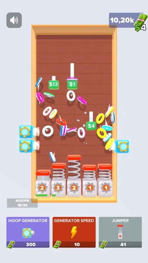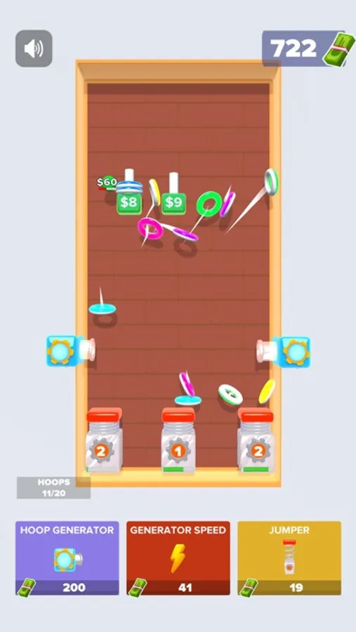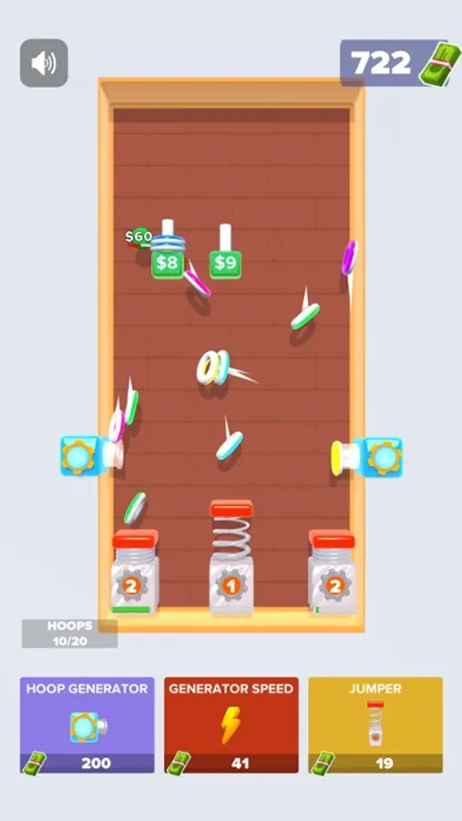 Bounce Hoops is an idle hoops management game. You need to buy new hoops generators and buy new jumpers so you can put them inside the sticks.