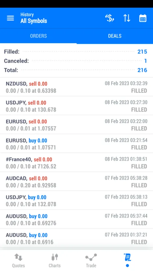 Experience virtual trading with real-time quotes of financial instruments and access to a complete set of trade orders, including pending orders. Enjoy various types of trade execution and keep track of your trades with a detailed trading history.