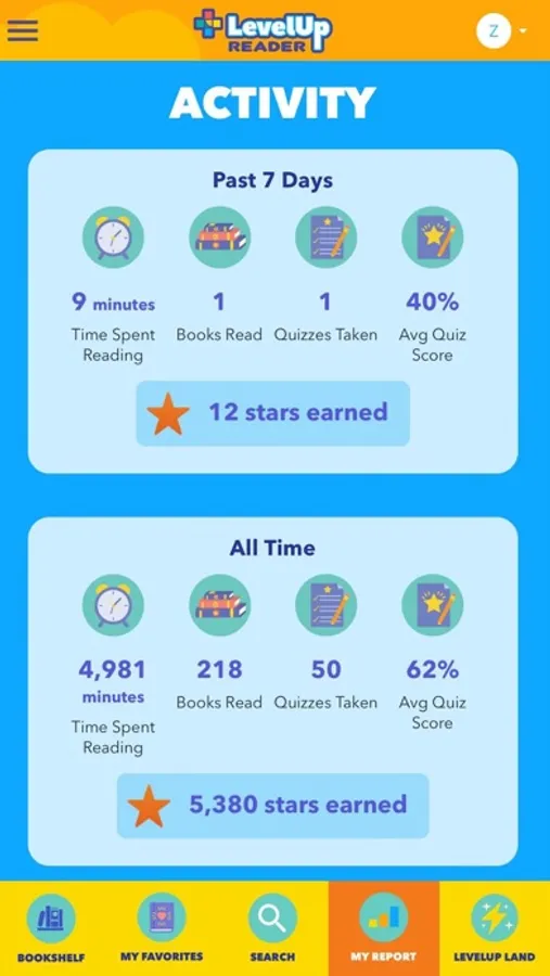 LevelUp Reader incorporates low-stakes progress monitoring assessments and provides intuitive reporting for analysis. By incorporating the Lexile® Framework for Reading, students can meet standard grade and age level benchmarks. Educators have access to online or downloadable reporting at a glance, plus the ability to drill down to over 100 data points at the district, school, class, and student levels.