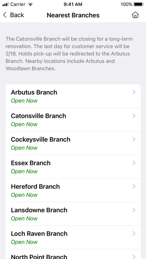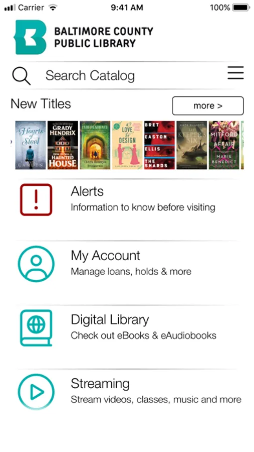 Find materials, resources, services and events to help you explore, learn, create and connect. Access our catalog, reserve and renew materials, register for events, find your nearest branch and download from our digital collection. Receive notifications about new materials or upcoming events. Chat with staff to answer questions. Manage your booklists and reading recommendations using our virtual shelves. Continuing to provide resources and services to improve the lives of Baltimore County residents. Join us and Be All In!