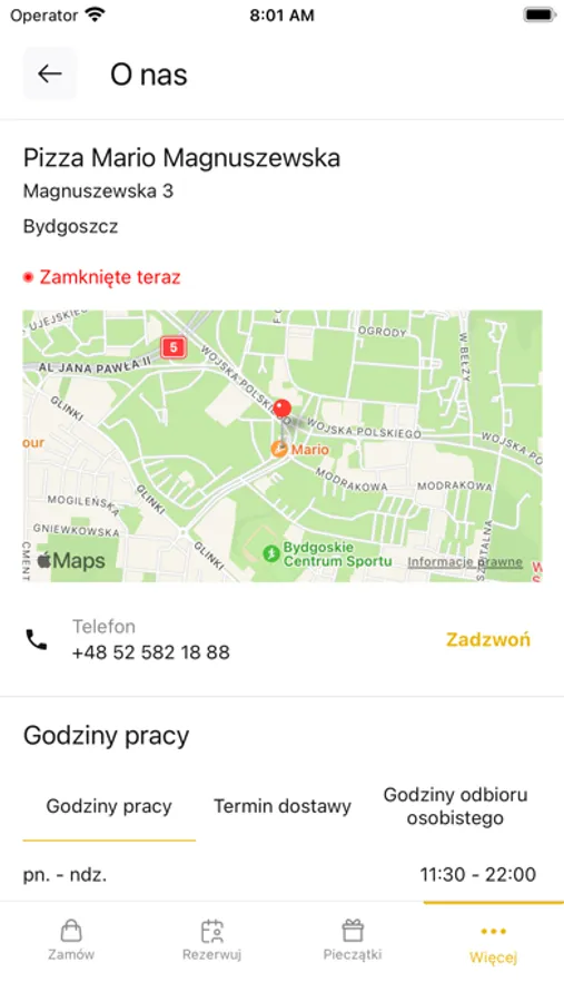 Oprócz zamawiania online aplikacja pozwala sprawdzić:
