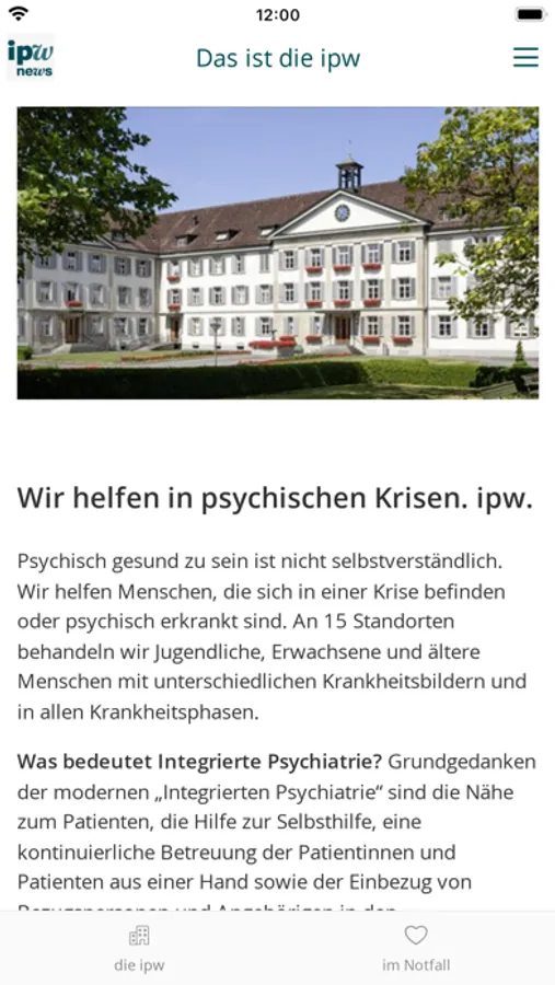 Die App informiert Patientinnen und Patienten, Netzwerkpartner, Mitarbeitende und interessierte Menschen aktuell und unkompliziert über Neues aus der ipw.