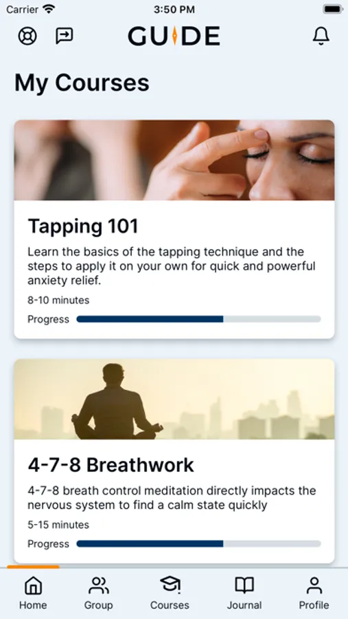 GUIDE is a wellness app that has achieved industry-leading results based on participants’ mental and emotional wellness, satisfaction, and retention.