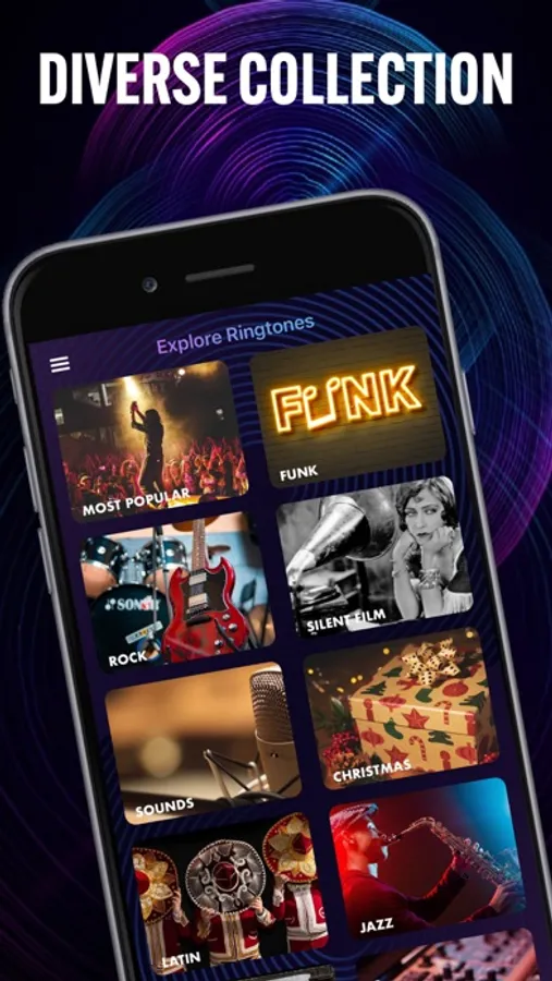 The ringtones are selected carefully with high quality, uniqueness and diversity: Funny ringtones, Funk, Latin, Jazz, Pop, Rock, R&B, Silent Film, Christian, Country, Scary, Bollywood, Alarm, African, ....