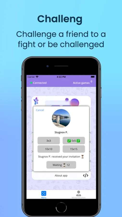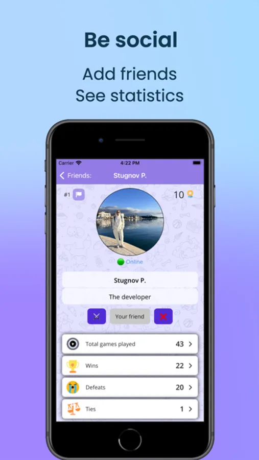 You can play with your friends or other players, see statistics and live charts, game history and TOP players.