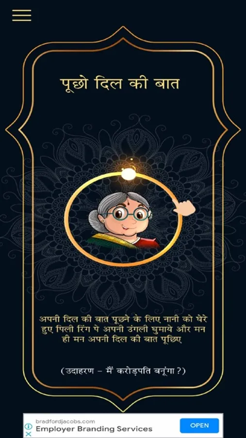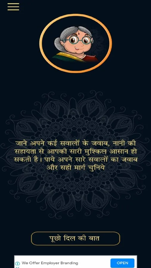 Naani Sab Janti Hai is an online interactive fantasy entertainment app in India which is owned and operated by BRAND WARS PRIVATE LIMITED and strives to bring to you the fantasy entertainment game in India. The app has been designed for enthusiasts who would like to entertain themselves with random answers to fantasy questions, that may be interpreted in the context of the question thought by the participant.