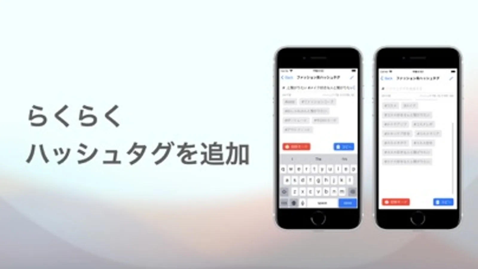 らくタグを使うとキーボードから直接大量のハッシュタグを即時に追加することができます。