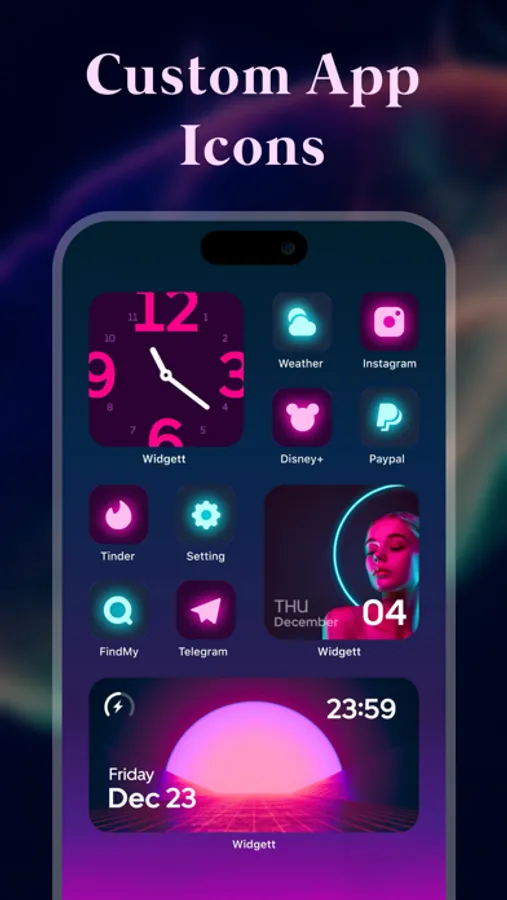 you’ll find hundreds of app icon packs including anime, minimalist, classic, neon, abstract, pastel, glitter, sports, scrapbook, nature, boho, kawaii, gold, retro and much more. All our app icons are carefully created to provide high-quality graphics for our users. Install all the app icons at once. It only takes 2-3 minutes to install a theme.