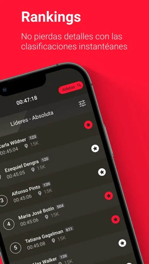 Además, podrás ver de forma rápida cualquier clasificación al instante: por categorías, los primeros/as corredores por tramo y el último punto alcanzado de los participantes a los que sigas.