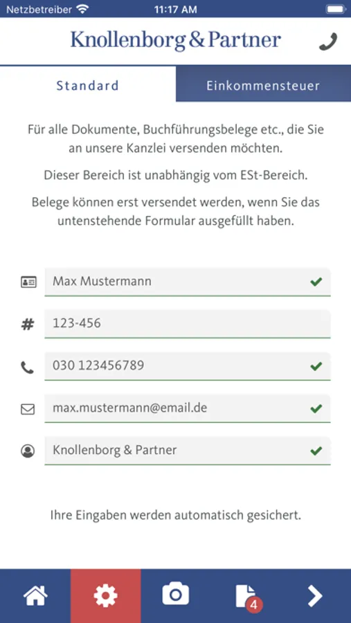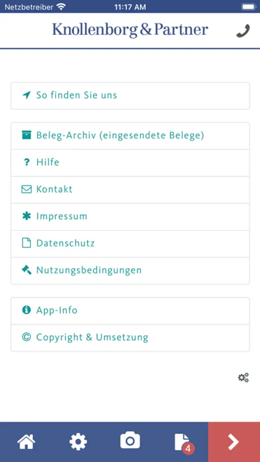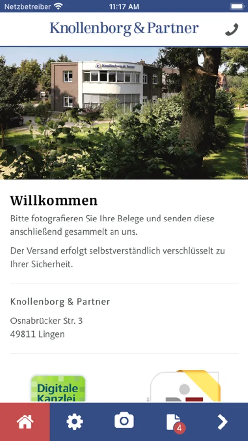 Mithilfe dieser App können Sie Belege, Dokumente und andere Schriftstücke schnell, sicher und komfortabel an Knollenborg & Partner gesendet werden.