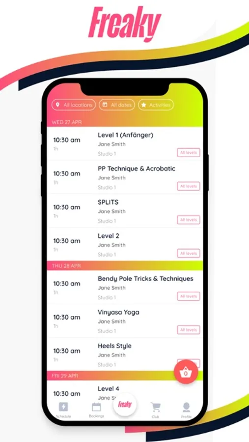 Entdecke den Polesport mit unserer eigenen FREAKY App. Verwalte deine Kursbuchungen und Anmeldungen mit Leichtigkeit und bleibe immer auf dem neuesten Stand.