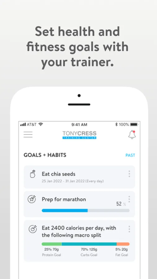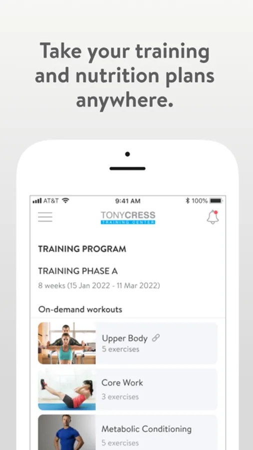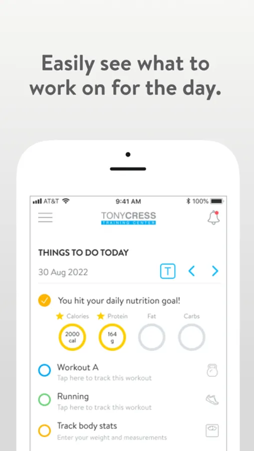 With the Tony Cress 360 Health App, you will have access to workout programs designed specifically to help you reach your fitness and health goals! You can follow & track your workouts, your nutrition, your lifestyle habits, measurements and results–all with the help of your coach.