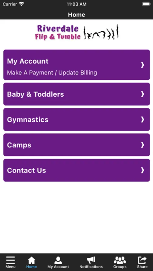 The Riverdale Flip and Tumble app allows you to manage your account with ease, register for classes, camp and special events. You'll also receive important notifications about class changes, closings, registration openings, special announcements, and upcoming events.