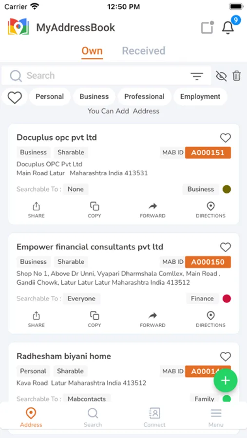 My Address Book is an easy way to reach the desired address. Every address has given a unique universal id i.e MAB id which is a Alpha numerical code one can easily remember. Now you can find, share and navigate to exact locations using MAB id.