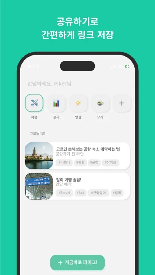 어떤 종류의 링크든, 공유하기 기능으로 아주 빠르게 링크를 저장해보세요. 파이크가 알아서 중요한 정보를 모두 캡쳐해서 저장합니다. 나중에 다시 보고싶다면 캡쳐된 정보로 언제든 쉽게 검색할 수 있습니다.