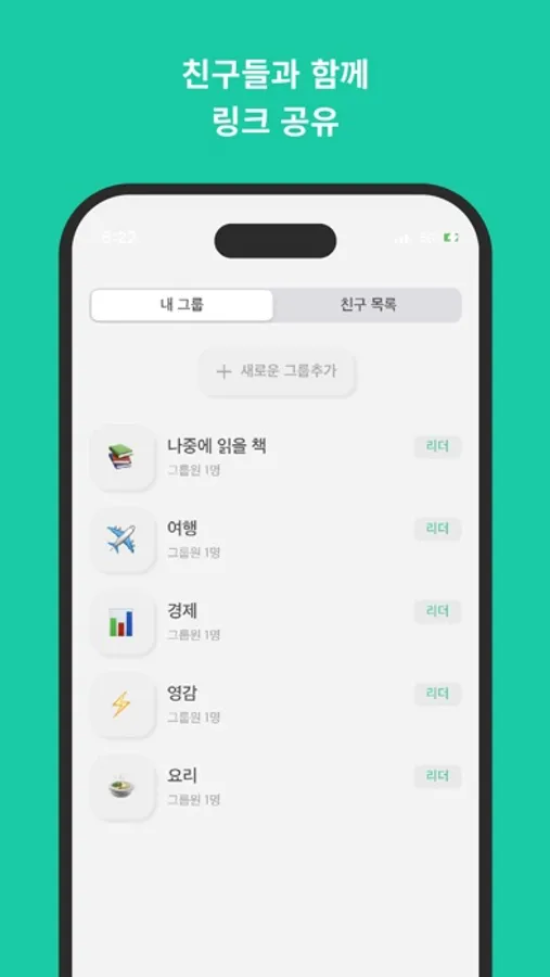 저장하고 싶은 링크를 분류할 그룹을 생성해보세요. 내 관심사별로 여러개를 구성하여 관리할 수 있습니다.