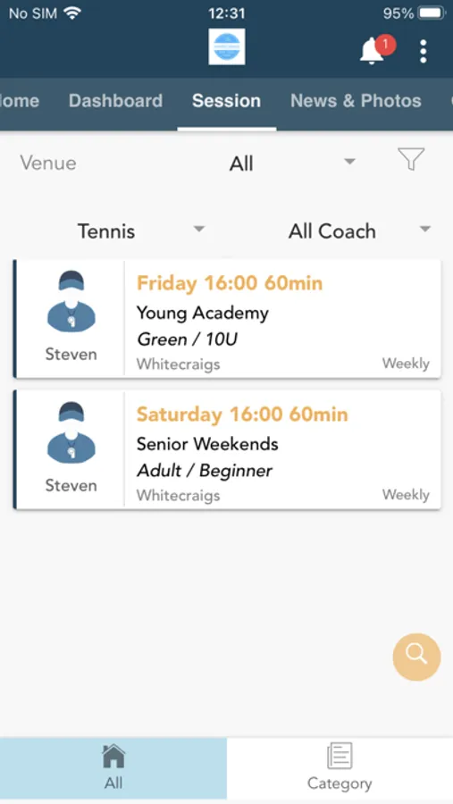 Our own branded app to facilitate booking on to our coaching programmes for 4 year olds to Adults of all levels - Schools, Club and Holiday programmes