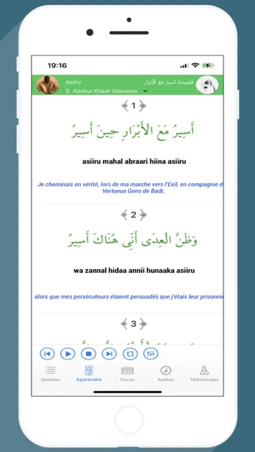 QasidasProApp est un didacticiel qui permet d'apprendre les poèmes écrits par Cheikh Ahmadou Bamba, le fondateur du mouridisme.