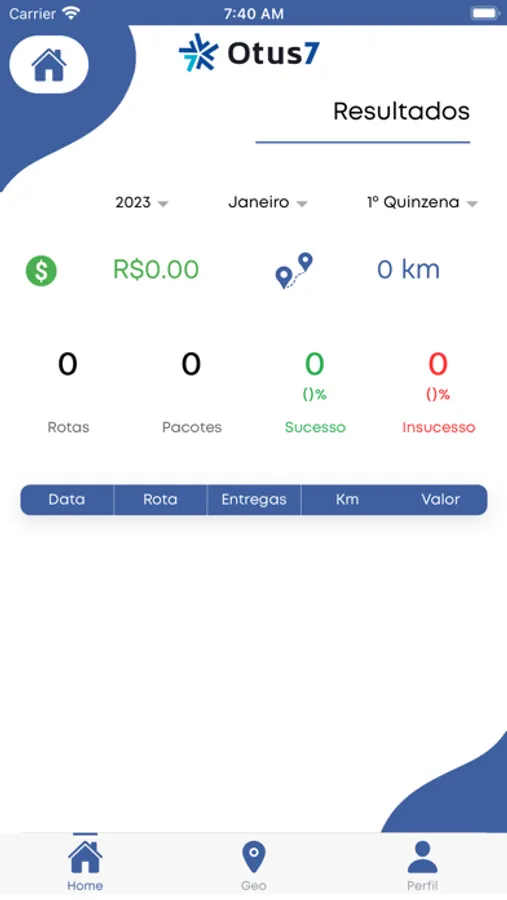 Sistema para gestão de faturamento de motoristas com entregas na plataforma pública Otus7.
