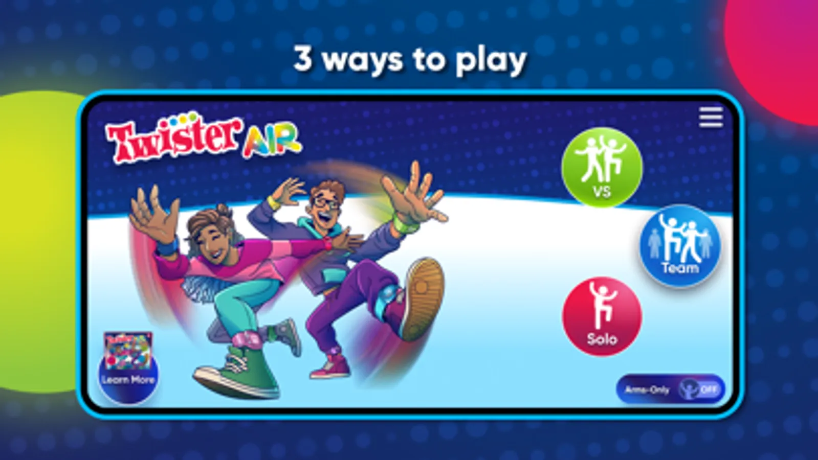 BIGGER SCREEN, BIGGER FUN: Display the TWISTER Air game on your TV! Connect or cast your device to your TV as you typically would. Ability to display the TWISTER Air game on your TV is subject to connection capabilities.