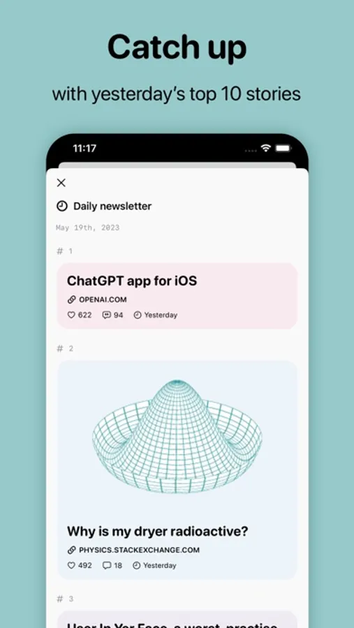 Get your daily dose of top stories with our in-app newsletter. Each day, you'll receive the top 10 posts from the day before, so you’ll be able to catch up on any major tech news you might have missed.