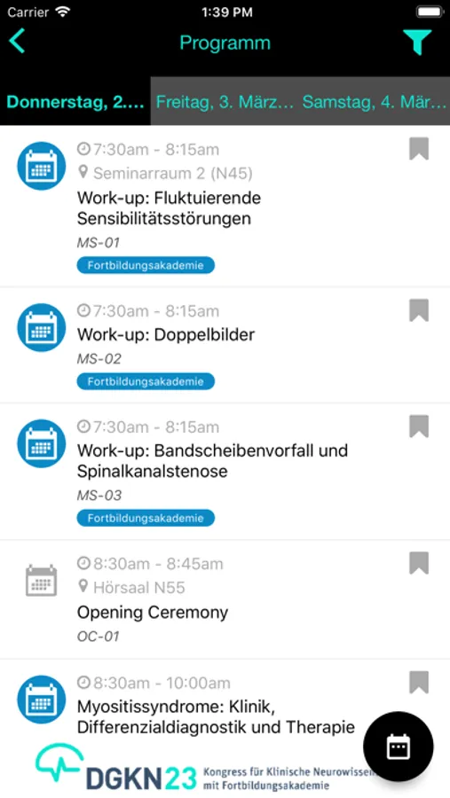 • Programmübersicht – sehen Sie das ganze Programm inkl. den Zeiten, Räumen und Speakern