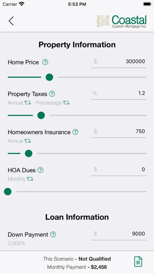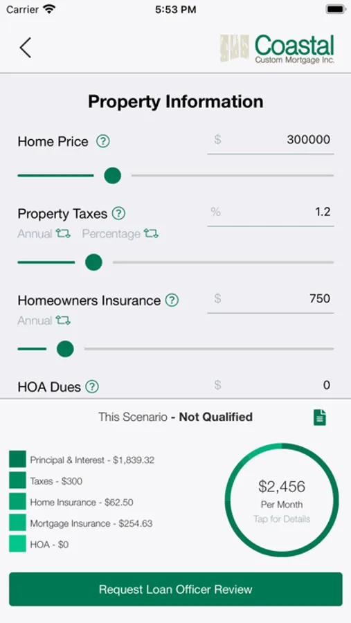 The Coastal Custom Mortgage app connects Home Buyers & Realtors with Loan Officers to learn which home loan they can pre-qualify for when searching for a home to purchase. If a home buyer is pre-qualified, they can print an official Pre-Approval letter to use when placing an offer on a house.
