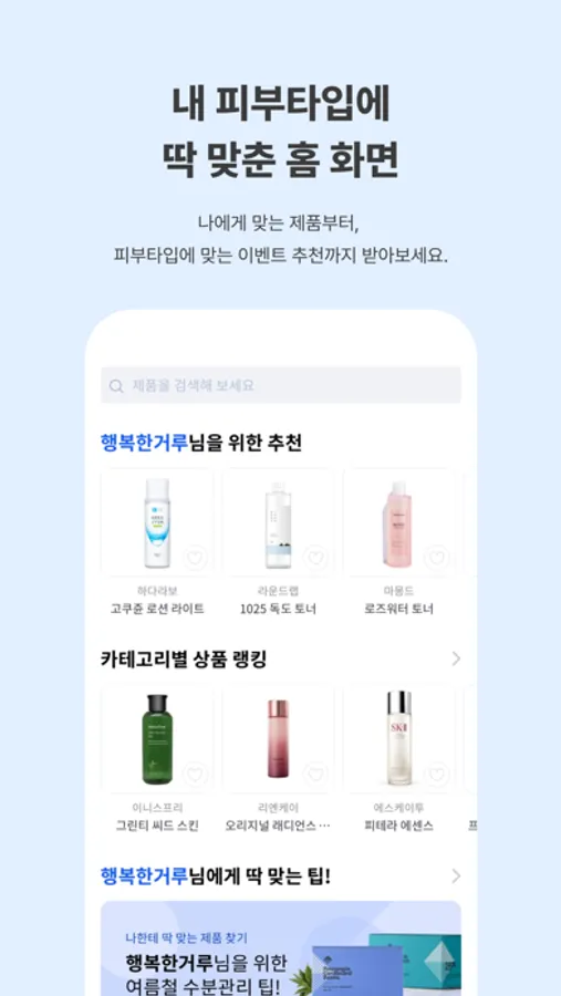 • 화장품 구매 전, 내피부와의 매칭률을 숫자로 확인할 수 있습니다.