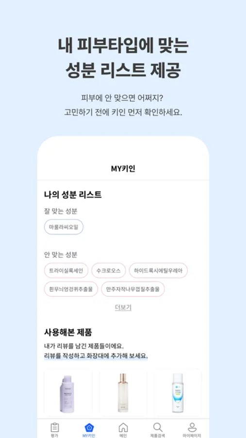 • 나에게 맞는 / 안 맞는 성분 목록 확인해서 똑똑한 소비해요!