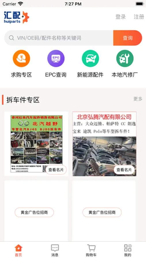 汇配拆车件APP主要针对从事拆车件配件商、修理厂、车主提供拆车件搜索、在线询价下单等功能。