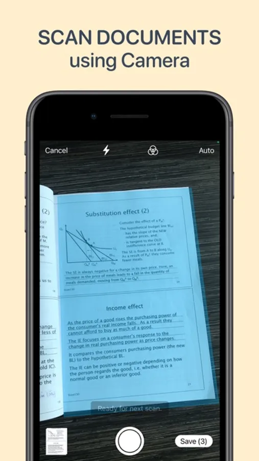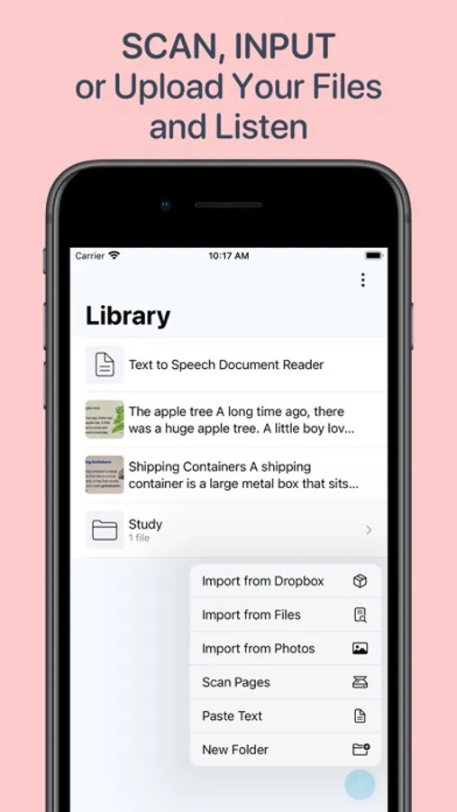 • Import documents (PDF, digital text, text in photo format) from variety of sources such as Photos app, Dropbox, Files from iCloud, etc.