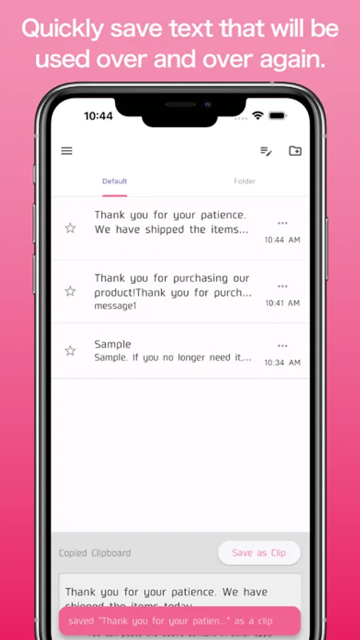 With "CopyPasteClip", you can copy a saved text with one click and immediately paste it in another application!