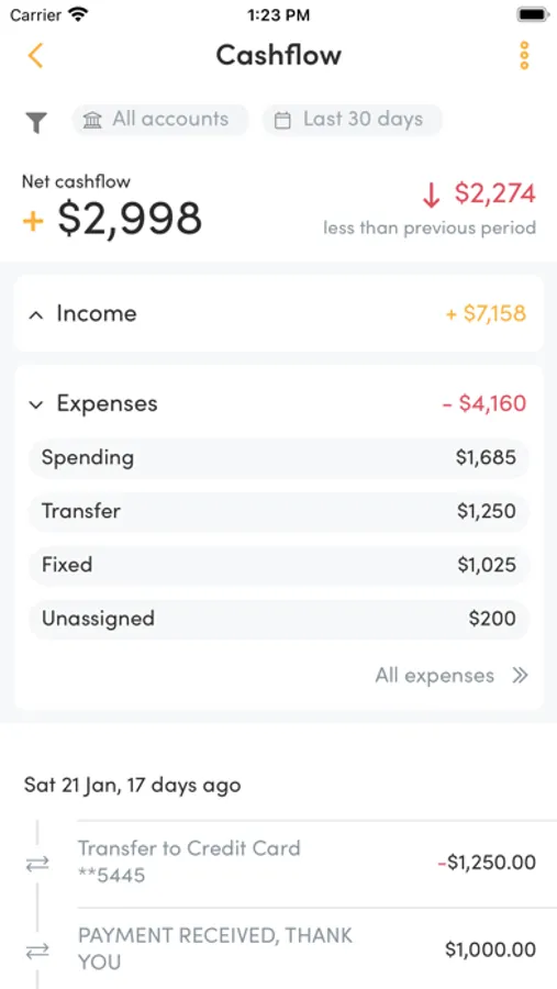 Live data feeds from bank accounts, super, investments, loans Document storage