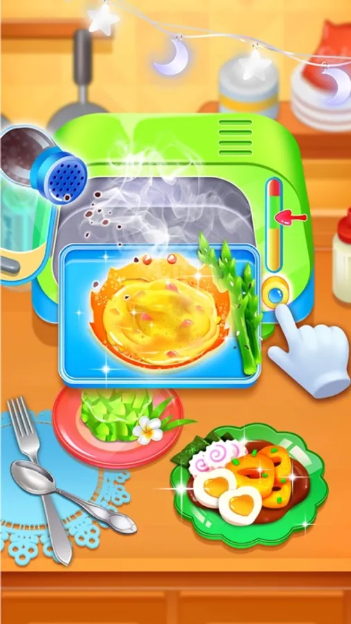 • Cutting vegetables:Swipe the screen with your finger and drag the kitchen knife to handle the required ingredients.