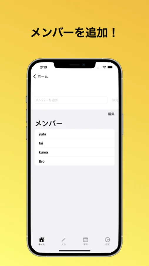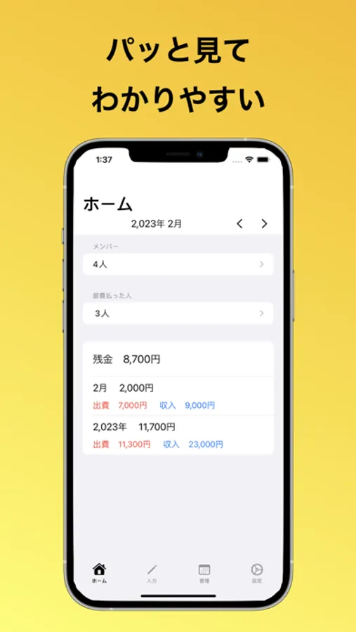 ・収入では、金額、メンバーの名前、日付、メモが入力できます。