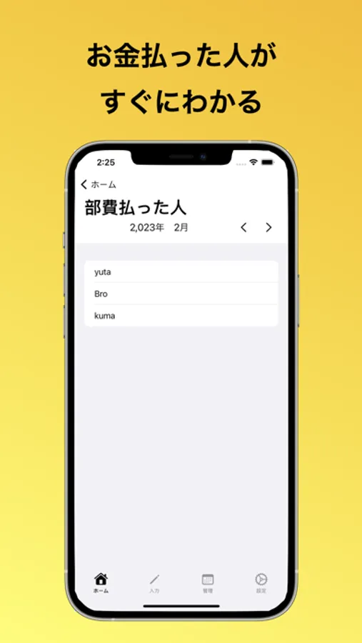 部費管理は主に毎月の部費を管理するアプリです。