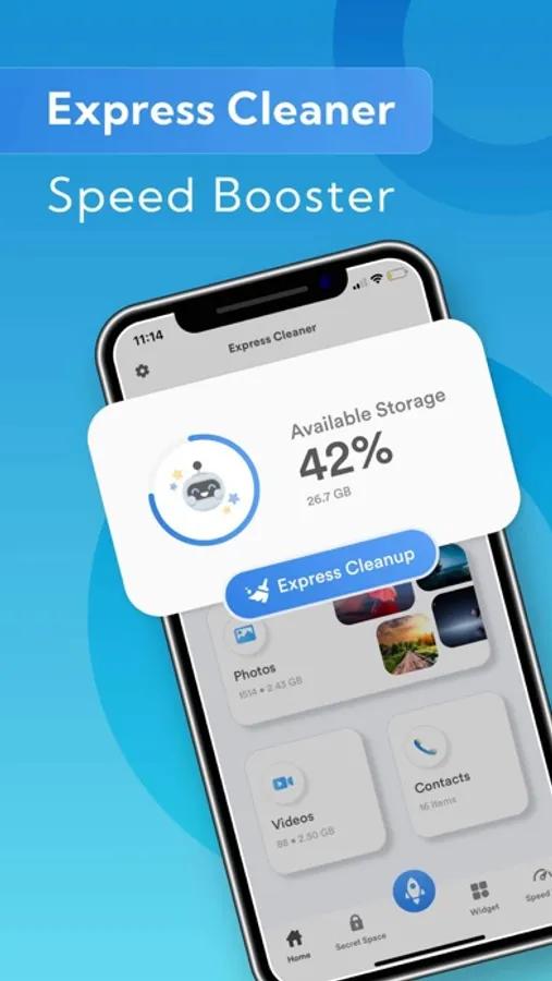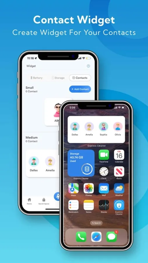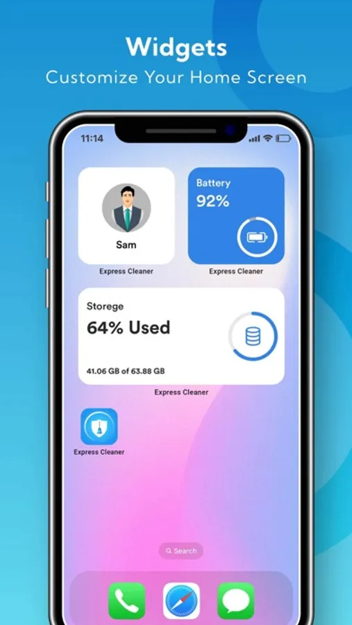 Add widgets to your Home Screen: Express Cleaner comes with a variety of widgets that you can add to your Home Screen to keep track of your phone's storage, battery, and contacts.