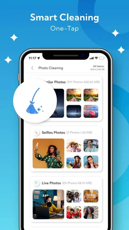 Free up storage: Express Cleaner's advanced algorithms find similar photos, similar videos, and duplicate photos and let you remove them with just a few taps. This can free up a significant amount of space on your phone, making it run faster and smoother.