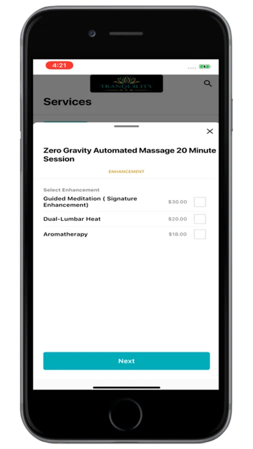 With the Tranquility Now Mobile app, access to immediate self care is literally a click or two away. Just click click click and you're in the door with your favorite personalized automated massage and enhancements waiting just for you. Having the app means you never have to call. You're in control. Access to automated massage and guided meditation just became a lot easier ... just a tap or two away and you'll be relaxing your back, renewing your mind and reclaiming your life in your own private tranquility pod, because you don't need tranquility in an hour, you need Tranquility Now.