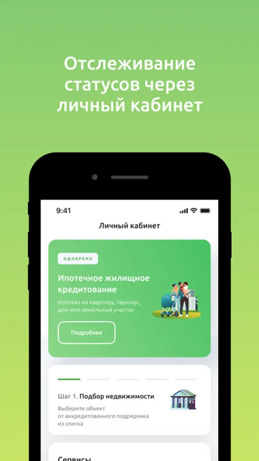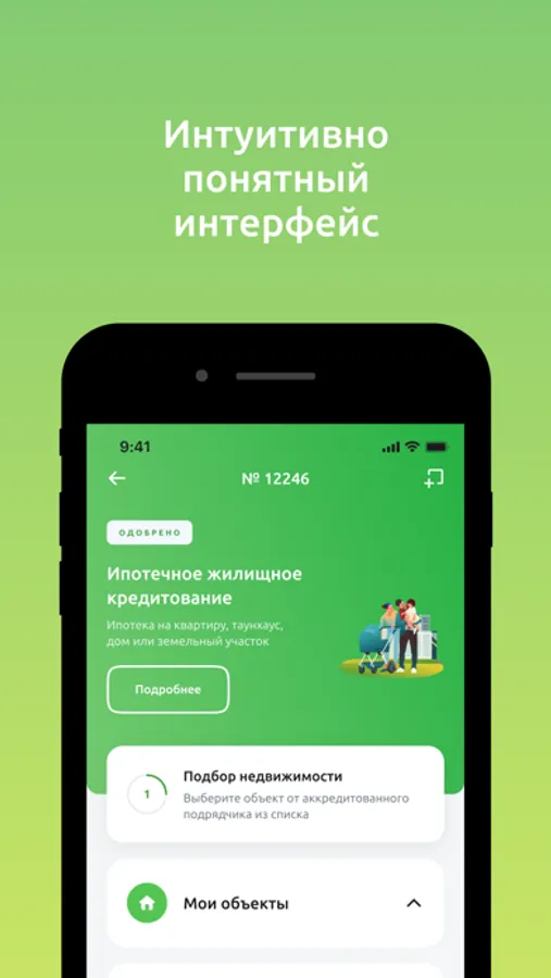 Приложение ориентировано на то, чтобы вы могли оформить ипотеку, не затрачивая много времени на походы в банк и ожидание согласования заявки. Мы сократили личные встречи до одной – для подписания договора, а всё остальное, вплоть до подачи заявки и отслеживания её статуса, можно сделать, имея под рукой телефон.